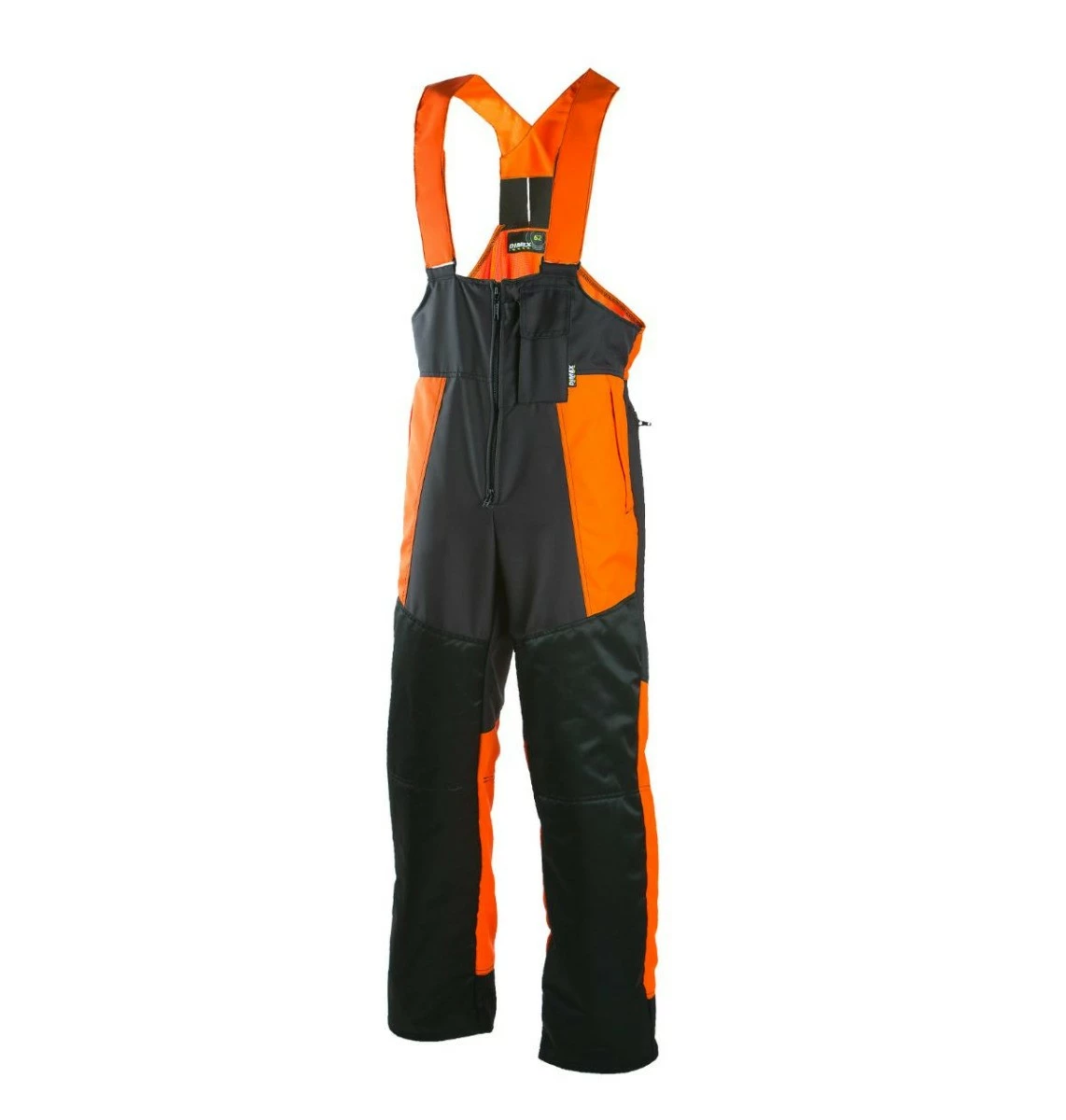 Dimex raivausavohaalarit on oiva valinta raivaukseen. Liukas pinta ei takerru helposti oksiin eivätkä roskat takerru myöskään housun pintaan. Haalareissa on vahvikkeet etupuolella sekä lahkeensuissa. Vetoketjulliset taskut löytyvät sekä edestä että takaa. Oikean lahkeen sisäpuolella on pehmustetasku, jossa on pehmuste mukana. Se suojaa raivaussahan tuomalta paineelta ja hankaukselta. Purulahkeen ansiosta saat lahkeen asetettua hyvin kengän päälle. 50 mm leveät olkaimet säädetään tarrakiinnityksellä. Ohuet olkaimet eivät paina valjaiden alla ollenkaan.