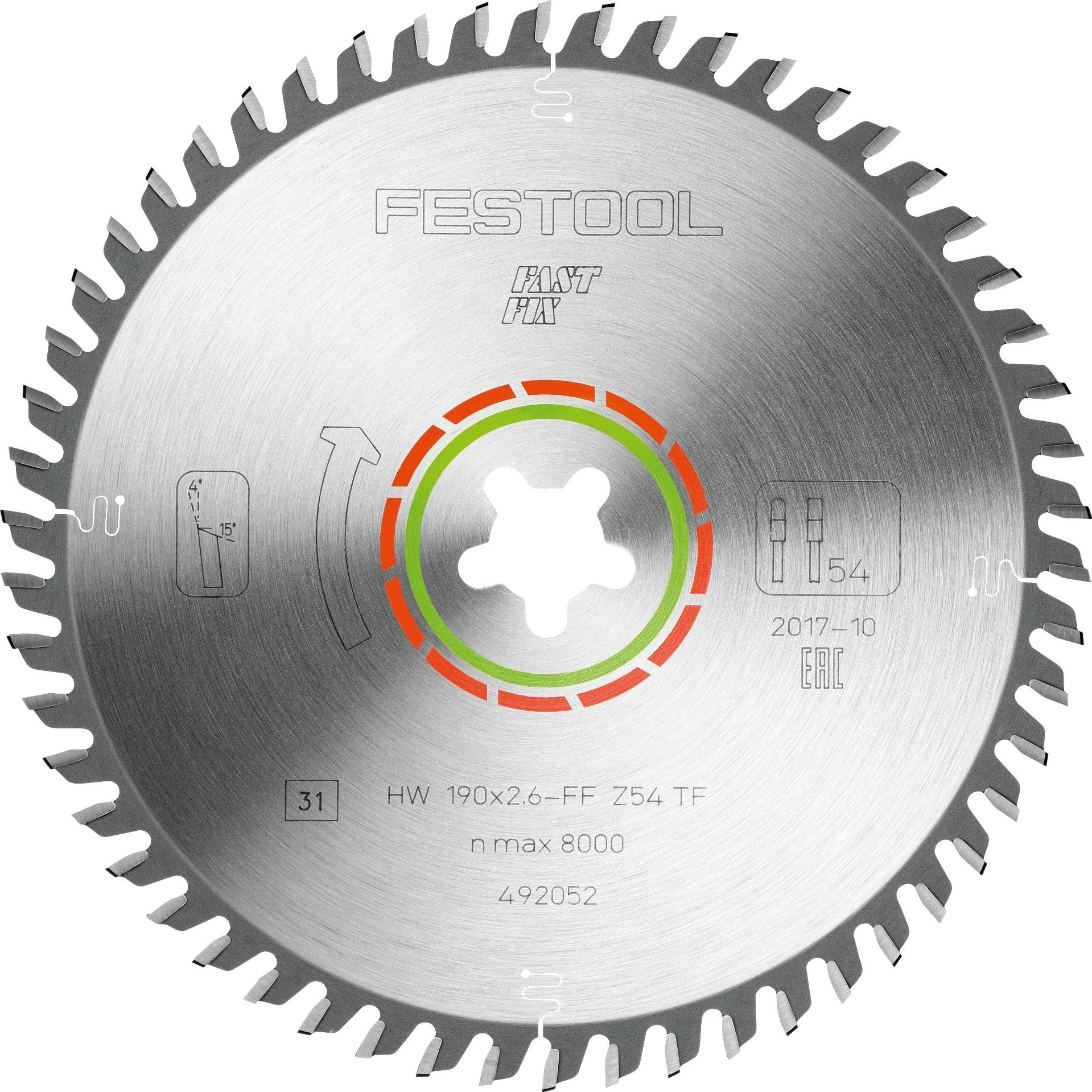 - Festoolin värikoodauksen avulla oikea sahanterä löytyy nopeasti: punainen väri viittaa muovin työstöön